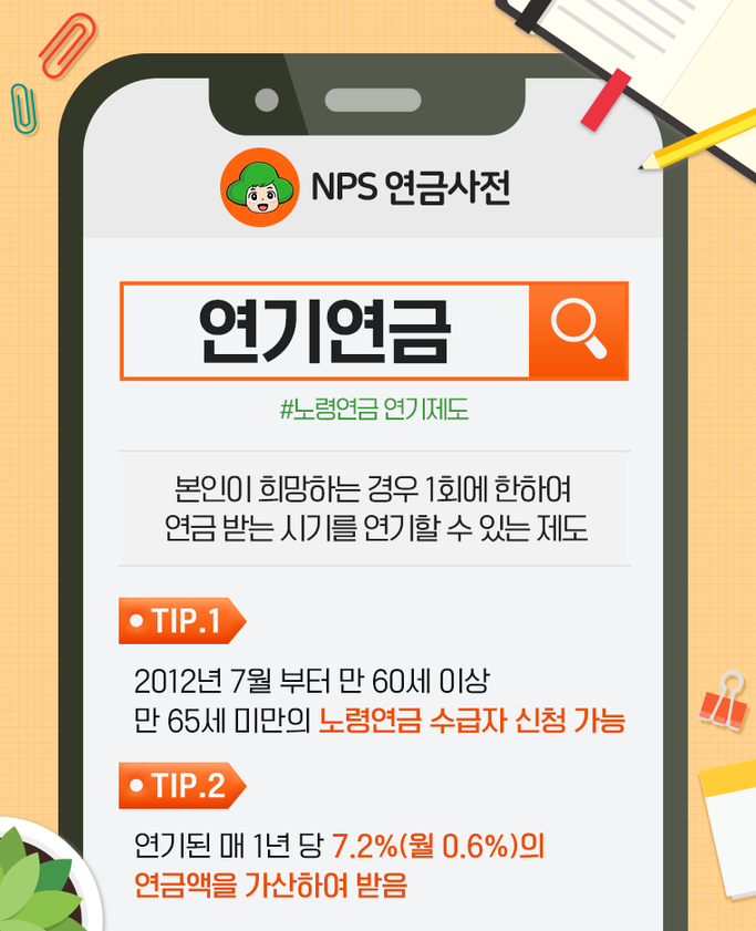 국민연금의 노령연금은 일정 연령에 모두 수급자가 되는 게 아니라 노령인구가 점점 증가하다 보니 연도별로 1년씩 뒤로 미뤄져 1952년생 이전은 60세부터 1953~56년생은 61세, 1957년~60년생은 62세, 1961~64년생은 63세, 1965년~68년생은 64세, 1969년 생 이후는 65세부터 그 대상이 되며 사망 시까지 평생 받게 된다.